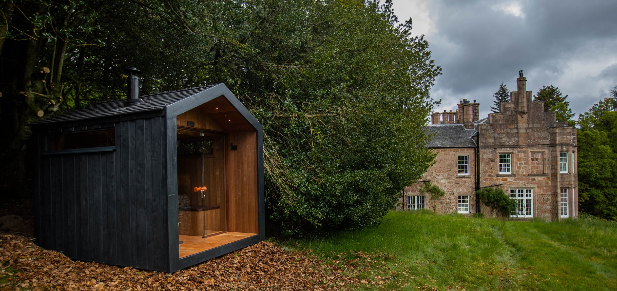 Designed with a view in mind, our Arbor saunas feature a full-height glass wall with a central frameless hinged door and post-box-style windows along the side walls. This creates a panoramic effect from the top tier that allows you to fully immerse yourself in the serenity of your surroundings—whether that be a peaceful part of your garden or a wider scenic view. The small porch reveal frames the view and provides cover and privacy.